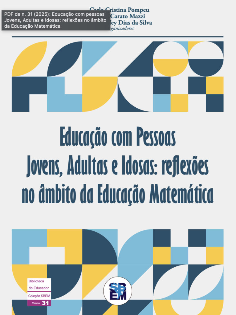 Neste livro, oriundo do esforço coletivo das pessoas que compõem o GT16 da SBEM, responsável por discutir o tema que dá título ao livro, publiquei um capítulo com a professora Carla Pompeu (UFPR), em que discutimos aspectos relevantes para nós como coordenadores de um curso de formação continuada de professores que ensinam matemática na EJA em todo o Brasil.